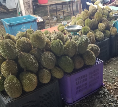 I see it everywhere and have been wanting to try it, but I don’t know if the Swiss Army knife can handle the job of getting into it. It looks dangerous. There are even signs on buses and public transportation saying that this fruit is not allowed as I’m sure it could be used as a weapon. People sell the large spike fruits on the street and I have seen it a lot on trees in the wild. It would have been interesting to be the first person ever to try this fruit. I don’t know if I would have done it, thinking this might be nature’s way of saying ‘don’t eat this, it’s poison inside’. It’s not like an apple you can just pick off a tree and enjoy a delicious first bite. Maybe if God would have put a durian tree in the Garden of Eden instead of an apple tree the fruit would have never been tasted. Then we could have avoided this whole man being cursed to work his whole life by the sweat of his brow and women being cursed with painful childbearing… You never know.