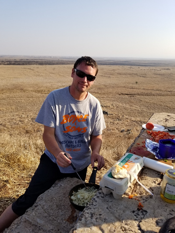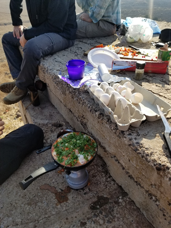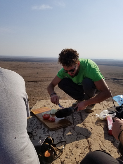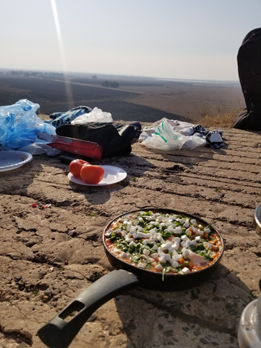 This also had really great panoramic views and a perfect spot for us to have lunch. Eytan and his friends prepared a local dish for us called shakshuka, and it was totally delicious. It is a thick red sauce dish with tomatoes, red bell pepper, onion, eggs and cheese that we had with bread. We had a very nice afternoon there before moving on to another spot right on the Jordan border.