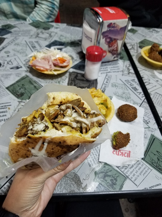 The hot springs were super-hot, and I watched from the side as all the guys got in. Another local who was there gave me a cup of Chai tea from his thermos and we stayed there until after dark. It was a bit of a drive back home but we stopped for coffee and chocolate to break it up. We had fun hanging out and listening to music on the way home. Once back to Ra’anana the guys showed us their favorite shawarma place and it was indeed delicious! Probably our favorite food in Israel so far. The portions were huge and we ate until we could not fit another bite.