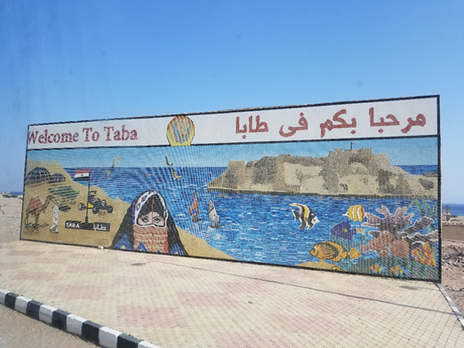 Our day started around 9:30am when we said goodbye to our friend Pascal and took a taxi to the central bus station in Dahab. From there we took a bus to the border town Taba. It was a beautiful, scenic ride up the Sinai Peninsula along the coast (there were a few stops for security checkpoints but not as many as coming to Sinai from Cairo). We were in a comfortable bus and I enjoyed looking out the window during the few hours on the ride. I find the bare, mountainess desert that backs up to the clear turquoise waters of the Red Sea to be very beautiful. I would not want to live in the desert as I know I need flora and trees to be a part of my environment, but the desert is a very pretty place to visit and like I said before, feels very exotic.