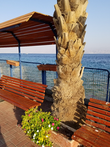 When we arrived in Taba, we walked to the Israel border crossing (there are taxi’s waiting to take you but there is no need because it is only a 10-15 min walk). We had to pay a $1 departure tax leaving Egypt. The immigration office entering Israel was the nicest we had seen. It was a big building that went out over the Gulf of Aqaba with huge windows as their walls so you could look out over the water while waiting in line.
