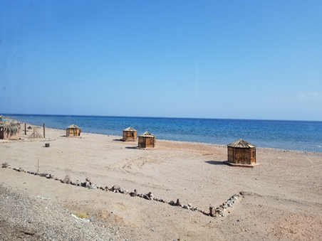 It was complicated to figure out transportation to Jordan. Everyone here sells package deals to go to Petra but they are quite expensive and we wanted the freedom to be able to explore on our own and go to Israel afterward. There is a ferry from Egypt to Jordan and I was very surprised that it was $100 per person one way (and it was only a two-hour boat ride so it wasn’t that far). The owner of the hotel in Dahab was very helpful and suggested we take the bus to the Egypt/Israel border… walk across and then take a bus to the Israel/Jordan border and cross over by land versus taking the ferry. This actually went very smooth and ended up saving us almost $200 between the two of us and only took a couple hours longer than if we had taken the ferry option.