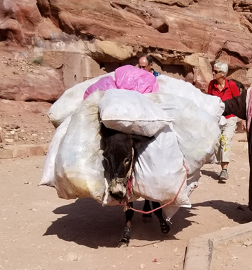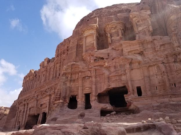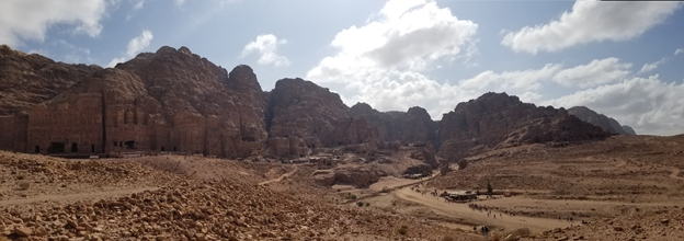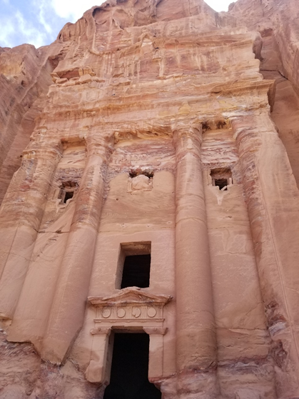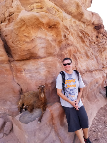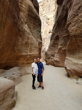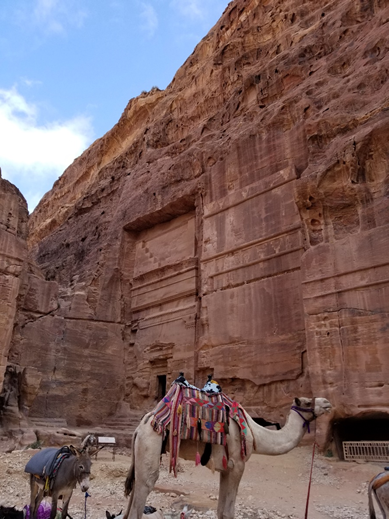 Today we got up early and had breakfast at our hotel before walking to the entrance of Petra. I think we left the hotel around 7:15am and had a full day exploring yet another Wonder of the World. I have been super excited about Petra since a few years ago when I saw a show on it. I have to say as excited as I was, it far exceeded both of our expectations. Petra is an ancient city over 2,000 years old that served as a vital part of a major trading route connecting Mesopotamia and Egypt. It was built by Nabataeans in the heart of the Shara Mountains. It is a whole city of intricate facades sculpted into sandstone cliffs that is just incredible. The city grew very rich through the trading of frankincense, myrrh, and spices. It thrived until a large earthquake in the 4th century destroyed much of the city. This combined with changes in trade routes led to its downfall and ultimate abandonment. It was then lost to all except local Bedouins from the area until 1812 when it was rediscovered by a Swiss explorer disguised as an Arab.