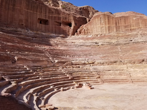 This provided great protection for Petra because at some points it is only wide enough for people and camels pulling carriages to come through single file. The color and designs in the rock walls were so beautiful and I felt my camera couldn’t pick up the detail.