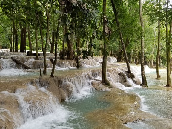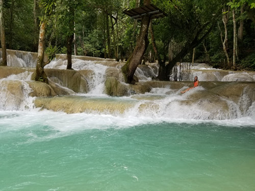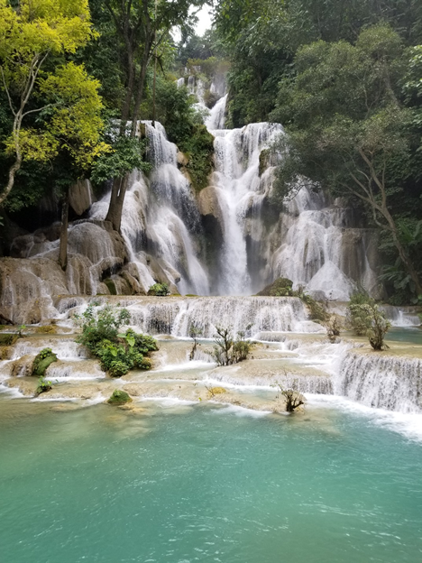 The next place we went to was called Kuan Si Falls, and the entrance there was only about $2. We first went through a rescue center for bears which was an unexpected surprise. We got to see some black bears lounging around and then went to the falls. This is the biggest and most known waterfall around Luang Prabang and where all the tours from town bring people. We got there and it was more beautiful bright blue cascading water through different pools and rocks. It was also super pretty, but I liked Tad Sae better because there wasn’t anyone there, and here there were too many tourists.