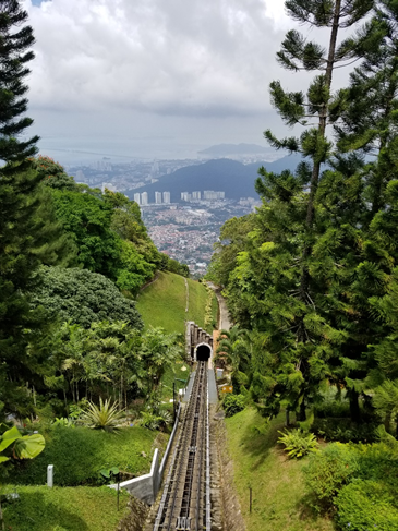 Penang Hill is a popular tourist spot that has a funicular you can take to the top for great views of the city, and you can even see to mainland Malaysia. The funicular railway is apparently the longest track in Asia and the steepest tunnel track in the world. It was very steep but unfortunately pictures don’t capture the incline. The views were very good, and we walked around at the top where there was a Hindu temple and a Mosque.