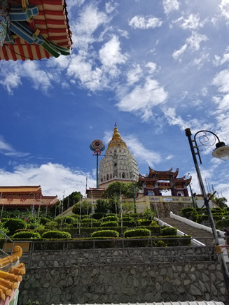 I was ready for a break, and to get my sunglasses so we decided to get a Grab back to the hotel. There was the largest Buddhist temple in Malaysia (Kek Lok Si) nearby, but I decided to skip it, knowing we are about to be in the land of temples very soon and I wasn’t really dressed appropriately. It was funny because although I entered the address of our hotel for the Grab driver, he just drove us to Kek Lok Si. We got there and told him, this is not where we are going and that he was supposed to take us to our hotel. He just said, “you get out now, I have other customers I am picking up here”. Okay… I guess we are going to see the temple. Things happen for a reason though as I am glad we didn’t miss it. My shorts and backless shirt seemed to be okay at this temple since they had a more come as you are vibe as long as you have ringgits (Malaysian currency).