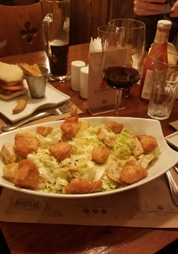 One cool thing happened today… We were on the plane to Punta Arenas which was delayed so we were not landing until pretty late at night. I looked at Taylor and said I could really go for a caesar salad and a glass of wine for dinner. She said ‘I hope that happens for you!’ We both kind of laughed knowing that is a tall order since we are landing so late in a town where we don’t know what the amenities are like. So far on this trip there have been few salads… We reserved one night in a hostel in Punta Arenas. We got there and set out to find some dinner. We found the most amazing place that was so cute and cozy. At 11pm at night I actually got my caesar salad and glass of wine! Believe it and receive it! We are looking forward to what tomorrow brings 🙂