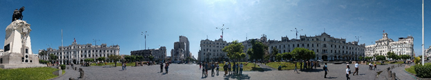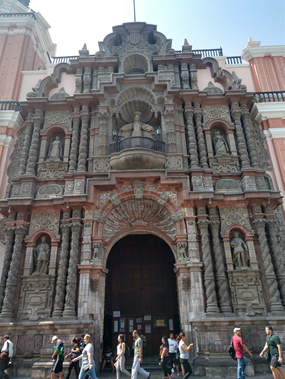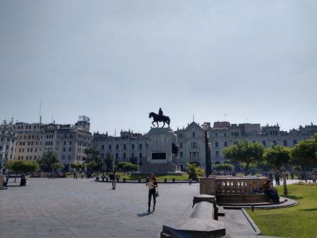 They have three lanes and use them as six lanes, aggressively trying to weave into non-existent spaces. We were laughing while looking at peoples’ side view mirrors that were literally rainbows because of colors scraped from other cars. Someone scraped our taxi while we were in it. A couple times I just had to close my eyes, worried we were going to be crashed into any moment. Horns are non-stop and I couldn’t imagine having to commute in that kind of traffic. It felt like you would be so stressed by the time you arrived at work, how could you possibly do your job? I guess the people just get used to it, but I couldn’t stand the non-stop squeal of horns when there was no direction anyone could possibly move. I didn’t understand the point of people continuing to honk. After two hours of being in that kind of traffic trying to get to our hostel, I wasn’t sure I was going to like Lima that much. However, that changed once we finally arrived at our destination. We had a really cute hostel right in Plaza San Marten in Lima’s historical district. The Plaza was absolutely beautiful and looked like something from a movie.