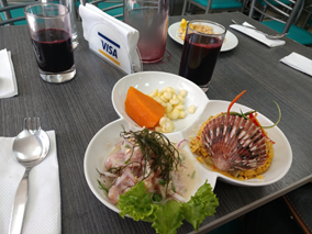 We stopped and got a green health drink made from all medicinal plants for only 30 cents USD. We also tried a quinoa peach drink which was super good for 30 cents. I started feeling healthier already. 😊 The guide recommended his favorite local ceviche spot for lunch which we tried. It was very good, but it was hard for me to eat the ceviche without any kind of chips (chips are not traditionally part of their ceviche).