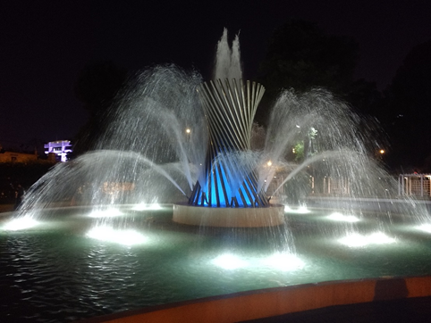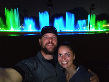 The park had many beautiful fountains all lit up with a background of classical music. I got a calzone and a churro and we got our spot for the 7pm light show. The show was super-impressive! We had a great time afterwards walking around the park.