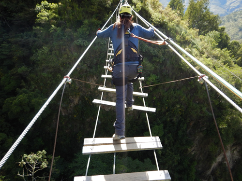 The lines were super long and REALLY high over beautiful valleys and rivers. We also got to do the lines in all different positions. The scariest was going upside down with your arms out. My favorite way was flying on my stomach like Super Man. This was a long, fast zip line and you actually use your arms to fly and control the direction you stay in so you don’t start spinning out of control. It was really fun! We also got to climb a rock wall and Brendan (with his new strength) opted for the ‘difficult route’ and did a great job. There was also a very high suspension bridge that I wasn’t nervous about until I got in the middle of it.
